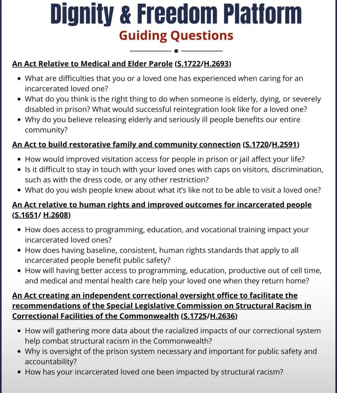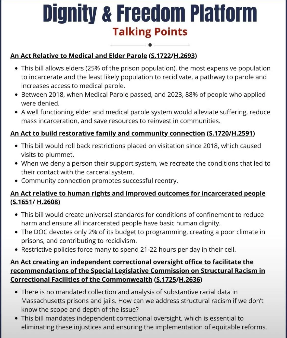 - An Act relative to human rights and improved outcomes for incarcerated people (Human Rights Bill) (S.1651/ H.2608),